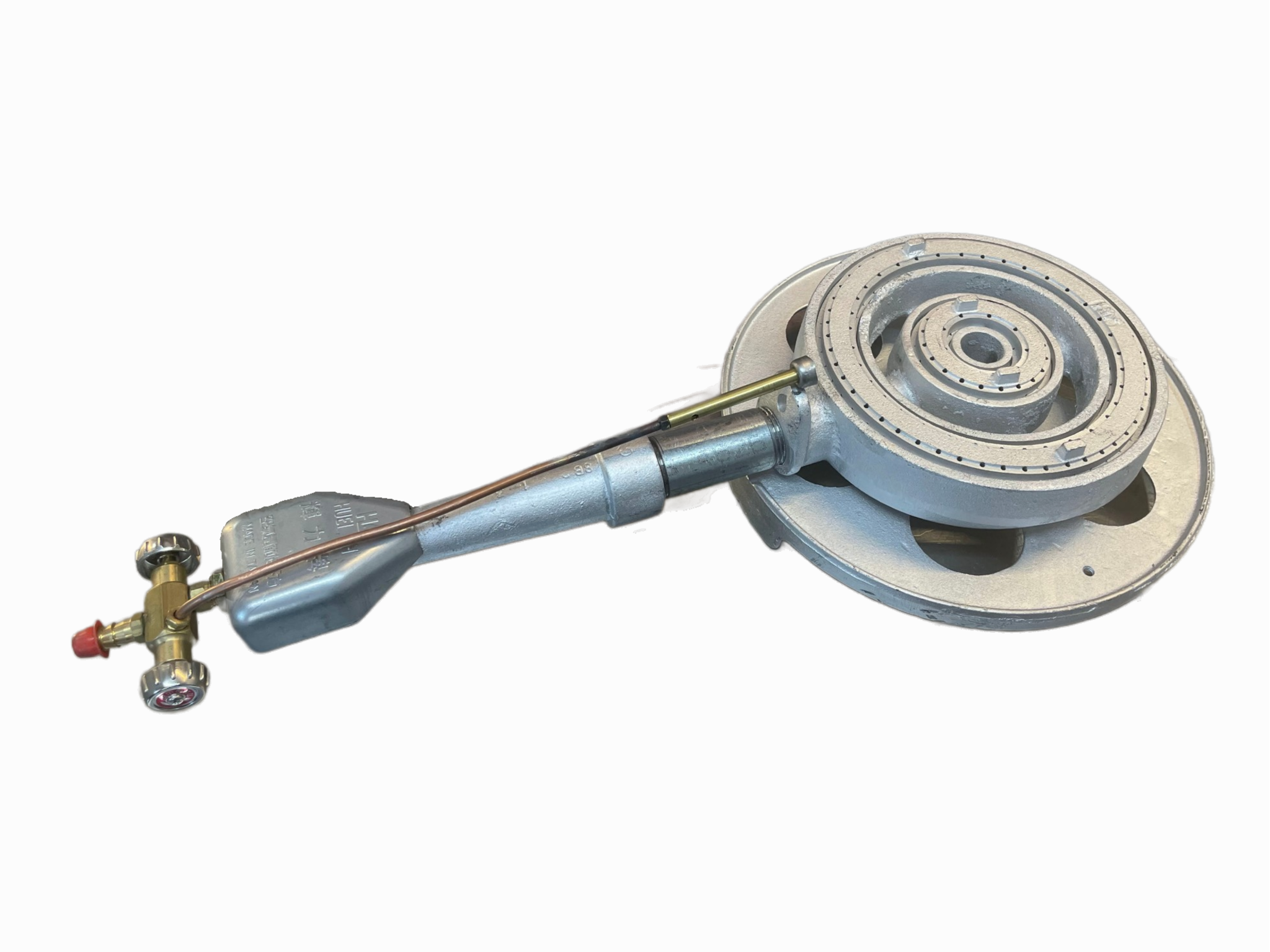 Features: •High-heat, fast-cooking stove with an ideal air-fuel ratio. •High-precision rack design allows the flame to envelop the pot and maximizes the heat energy. •Silver-painted inner and outer flame disks induce greater cooking power. •Uses wind-resistant round head pilot light that is not likely to go out. ★Picture •Manual ignition switch, requires external source of ignition. •Left knob of the manual ignition switch is the main burner, right knob is the pilot light; turn clockwise to turn off, counterclockwise to turn on.